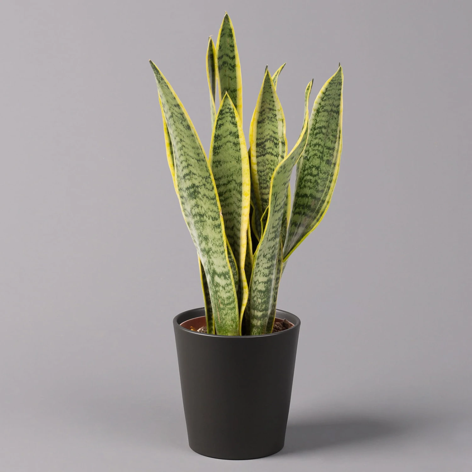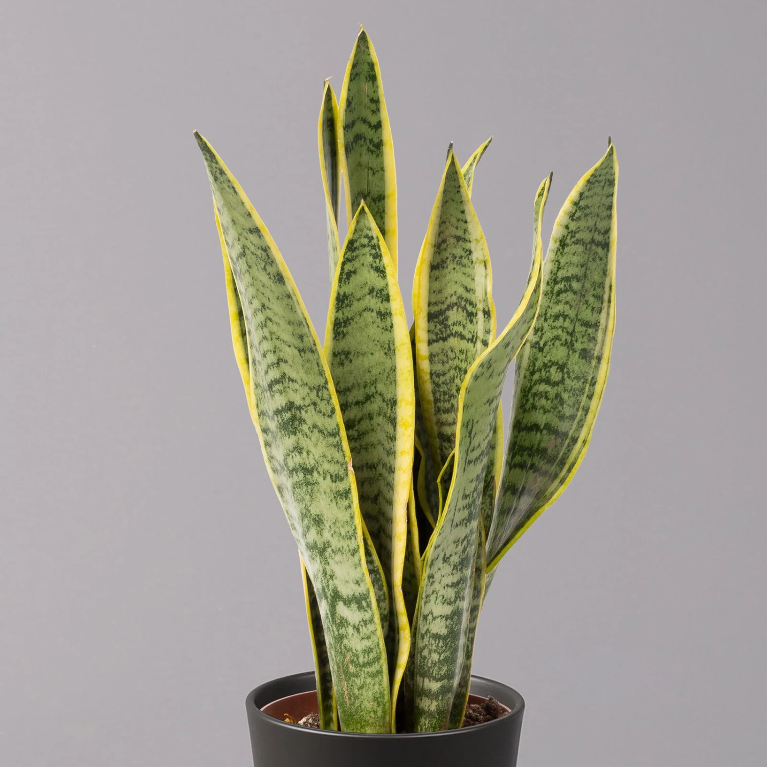 Der Bogenhanf (Sansevieria trifasciata ‚Laurentii‘) gilt als eine der robustesten und pflegeleichtesten Zimmerpflanzen überhaupt und ist auch unter den Namen ‚Sansevierie‘ oder ‚Schwiegermutterzunge‘ bekannt. Charakteristisch sind die riemenartig festen, fleischigen Blätter, deren Blattränder beidseitig gelbe Querstreifen aufweisen. Die grundständigen Blätter entspringen einem Rhizom und enden aufrecht in einer Spitze. Bei guter Pflege kann der Bogenhanf über einen Meter hoch werden.