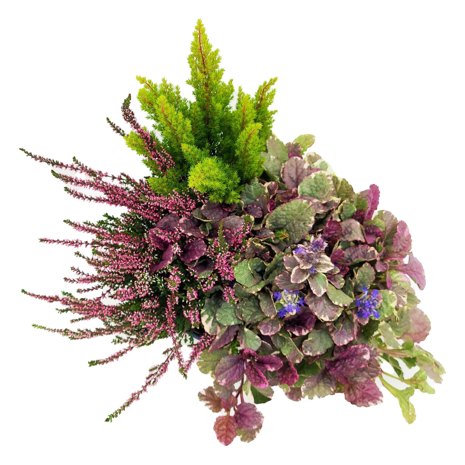 Zur Bepflanzung von Kübeln, Balkonkästen und zur Grabbepflanzung eignet sich dieses Pflanzen Trio aus Kriechendem Günsel, Baumheide und Calluna vulgaris sehr gut, ohne geeignete Pflanzpartner suchen zu müssen.