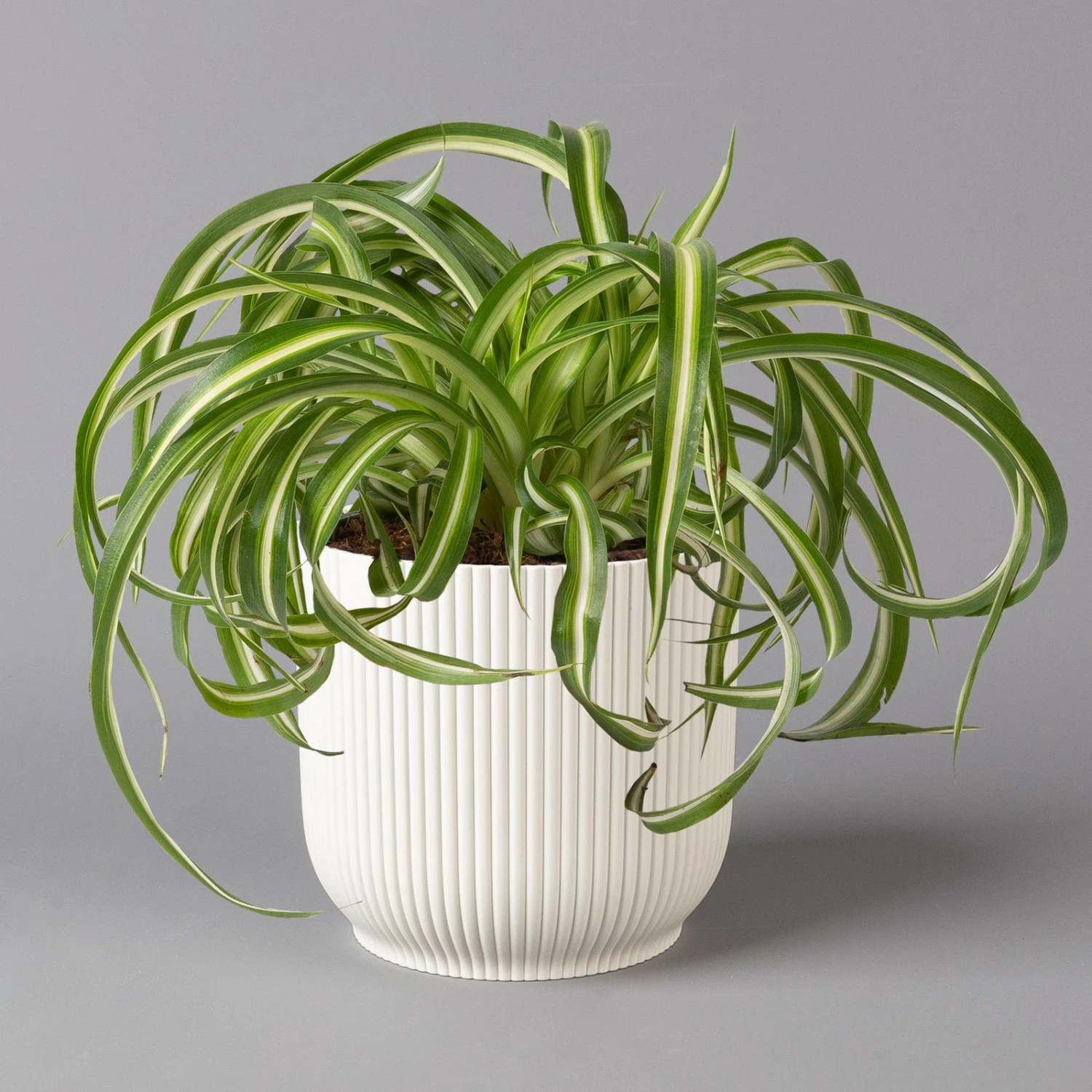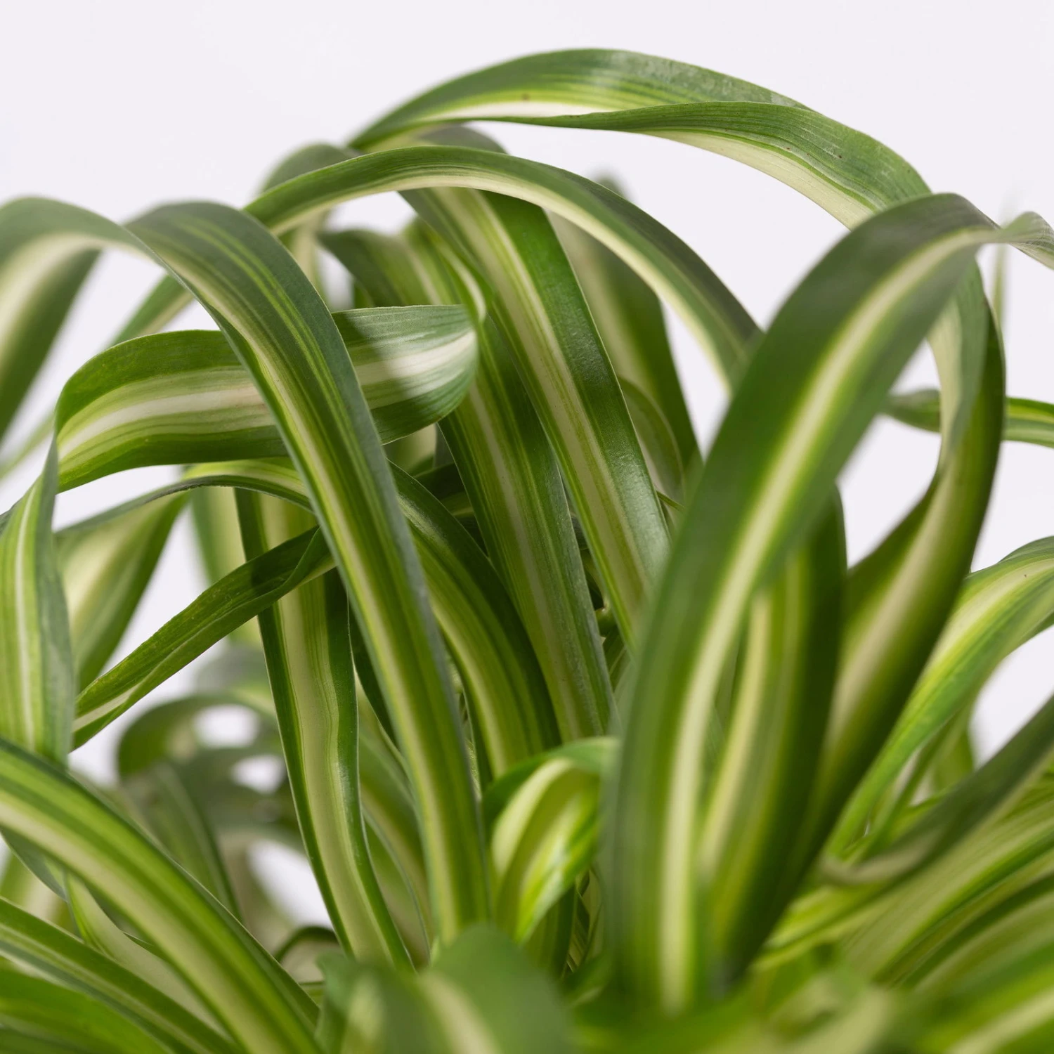 Die Grünlilie (Chlorophytum comosum) zählt zu den Klassikern unter den Zimmerpflanzen und war die Trendpflanze der 70er-Jahre. Seit geraumer Zeit feiert die Grünlilie als absolut pflegeleichte und robuste Grünpflanze ein Comeback und schmückt Wohn- und Badezimmer mit ihrem Retro-Charme. Charakteristisch sind die länglich-lanzettlichen Blätter, die je nach Sorte gelb bis grün gestreift sind. Die Blätter entwickeln sich überhängend aus einer Rosette heraus und formen einen dichten Blattschopf. Grünlilien erreichen bei guter Pflege eine Höhe von bis zu 40 cm.