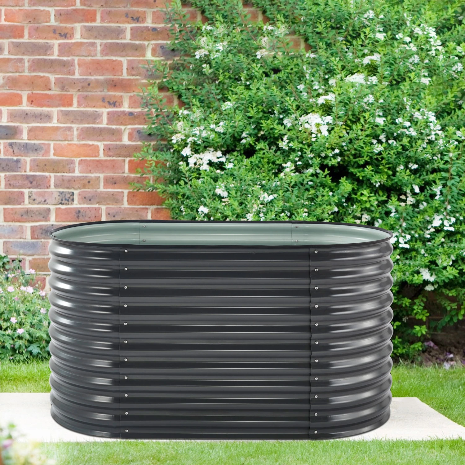 Jetzt können Sie Ihre Gewürzkräuter und farbenfrohe Blumen mit Stil und Komfort ziehen. Das ovale Hochbeet aus gewelltem Stahlblech überzeugt mit seiner rückenschonenden Höhe und mit praktischem Kantenschutz gegen Verletzungen.