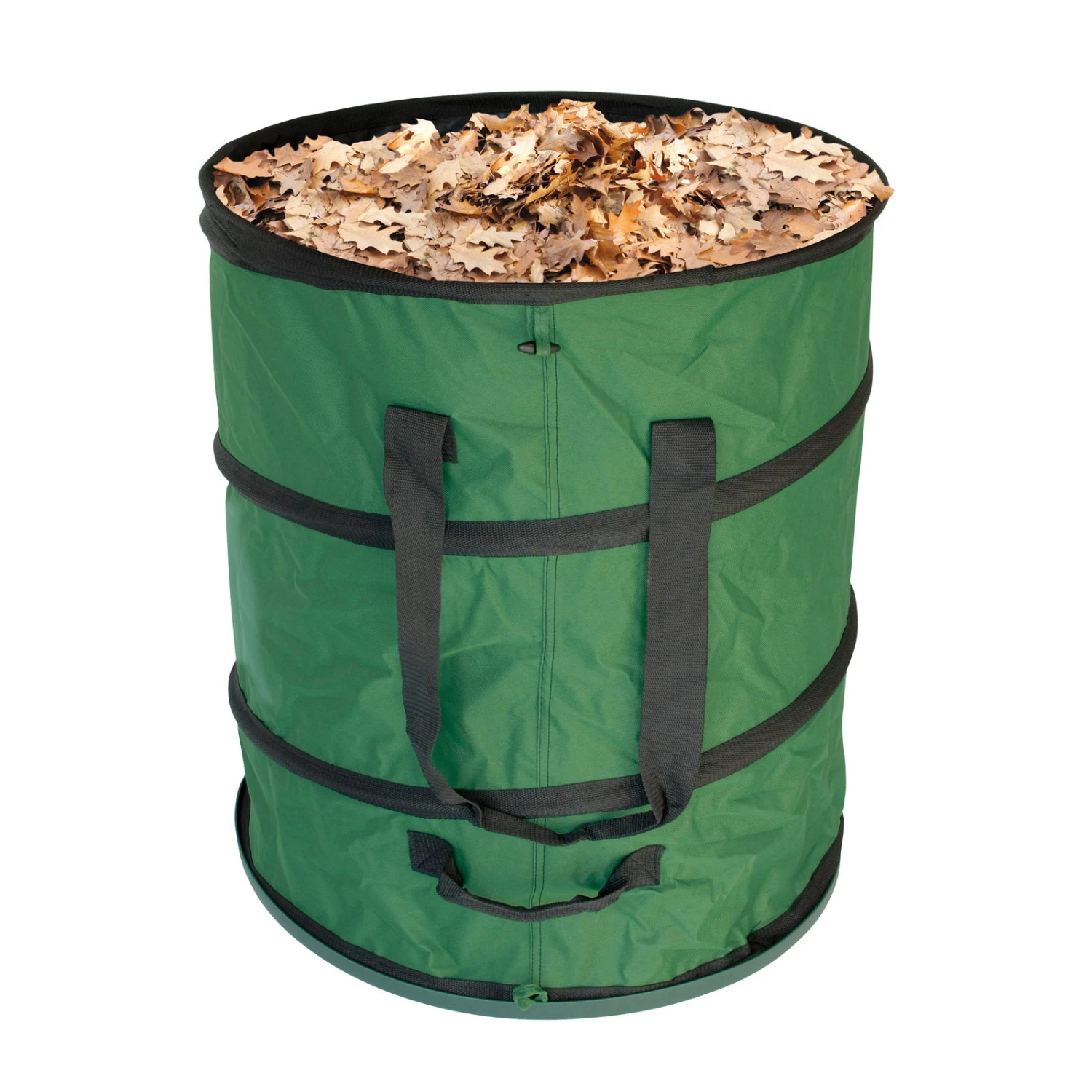 Der grüne Kölle Profi-Laubsack ist mit einem Pop-up-System mit eingenähter Federstahlleiste ausgestattet, anhand dessen er ganz einfach flach zusammengefaltet werden kann. Robustes, hochwertiges Material und stabile Griffe sorgen für Strapazierfähigkeit und eine einfache Handhabung. Dank des stabilen, verschraubten Kunststoffbodens kann der vielseitige Laubsack bedenkenlos und ohne Schaden zu nehmen über Asphalt gezogen werden.