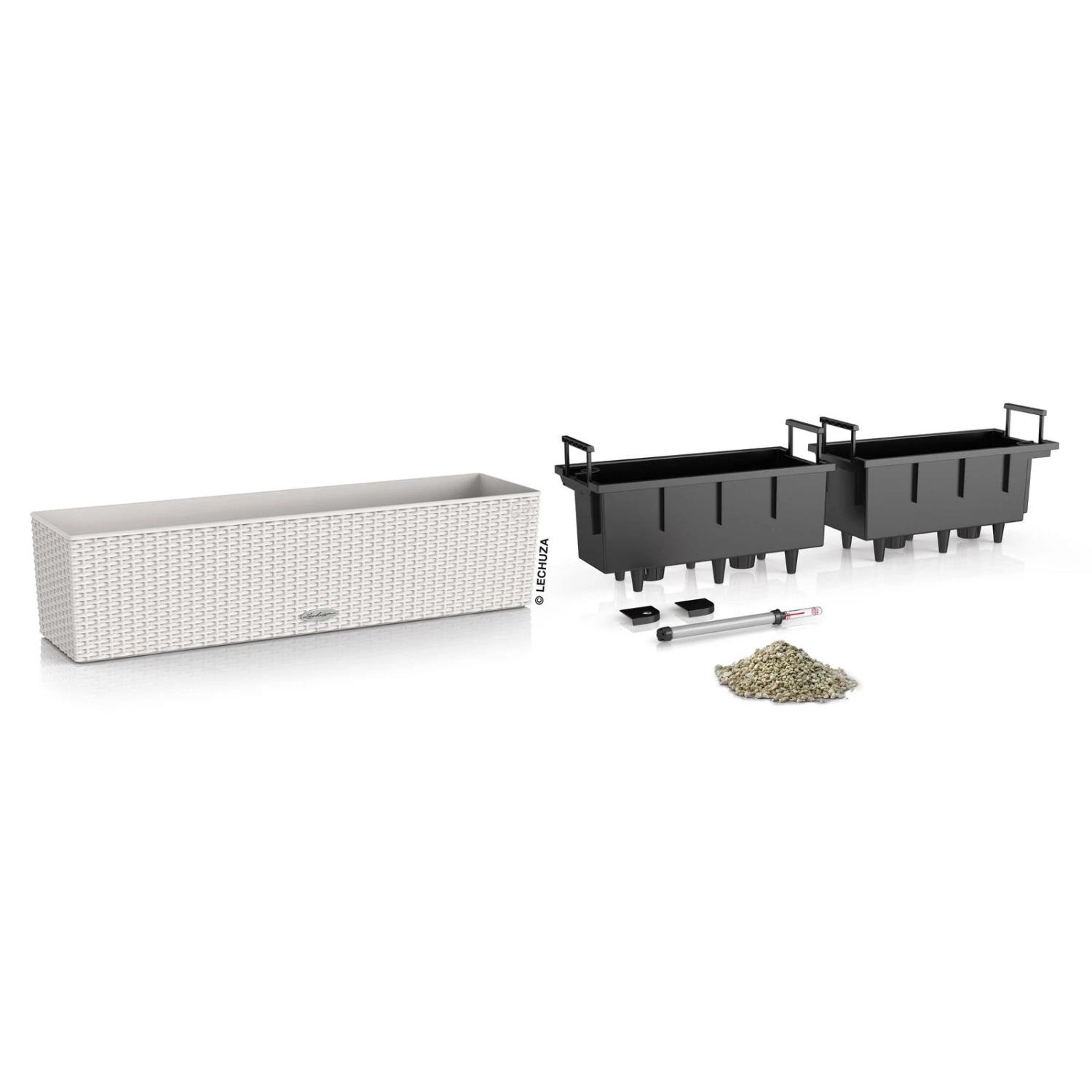 In dem dekorativen Pflanzkasten ‚Balconera Cottage 80‘ von Lechuza fühlen sich Ihre Balkon- oder Zimmerpflanzen wohl. Der smarte Blumenkasten verfügt über ein integriertes Bewässerungssystem für optimale Wasserversorgung. Die angesagte Flechtoptik verleiht dem Balkonkasten in Lichtgrau einen modernen Touch.