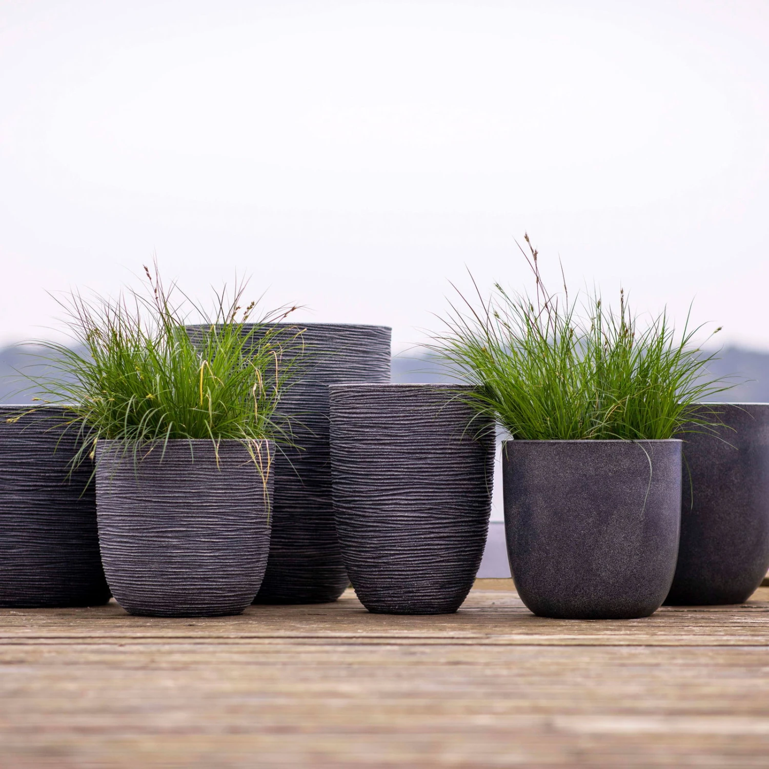 Pflanzgefäß ‚Rib‘, Grau, Ø 35 X H 34 Cm