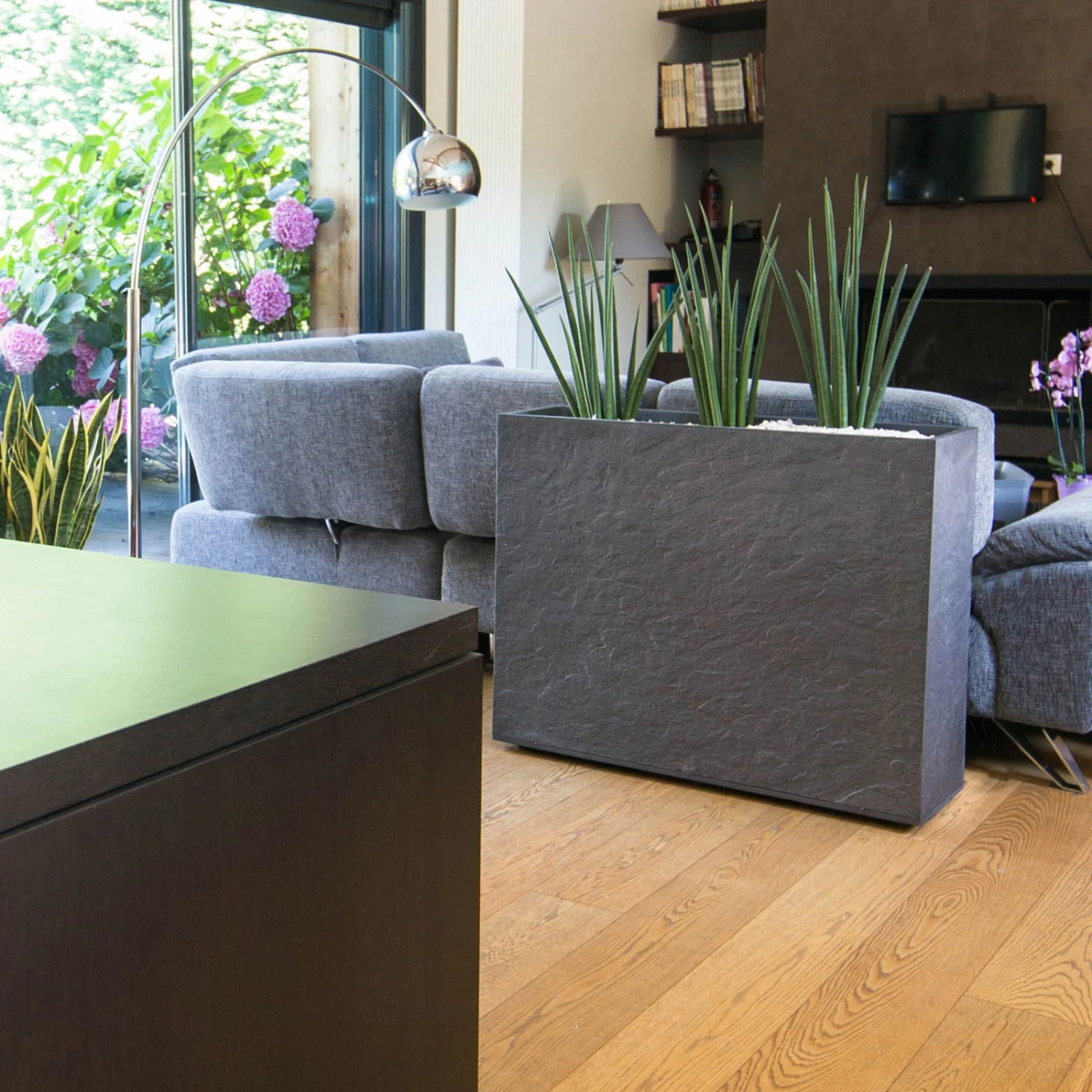 Der Pflanzkasten Volcania Crunch High in der dezenten Farbe anthrazit ist Ihre Möglichkeit, Ihre Terrasse, Ihr Office oder Zuhause mit dekorativen Zierpflanzen zu bestücken. Dieser stilvolle Pflanzkasten aus robustem Kunststoff in doppelwandiger Ausführung hat eine Wassersammlungszone für artgerechte Pflanzenpflege und ist absolut wasserdicht.