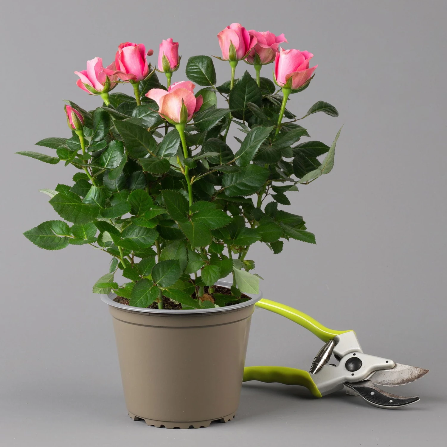 Die Rose (Rosa) überzeugt seit jeher mit ihrer Eleganz und ihren prachtvollen Blüten, ob als Schnittblume, im Beet oder als imposante Rosenbüsche. Mit unserem Set’s erhalten Sie formschöne Topfrosen in dunkelrosa, die sowohl als bezaubernde Tischdekoration als auch als Stilelement auf Fensterbank oder Schränken eine tolle Figur machen. Sobald keine Gefahr von Nachtfrösten mehr besteht, kann die Rose auch im Kübel oder Balkonkasten auf Terrasse und Balkon, oder sogar ins Beet im eigenen Garten ausgepflanzt werden.